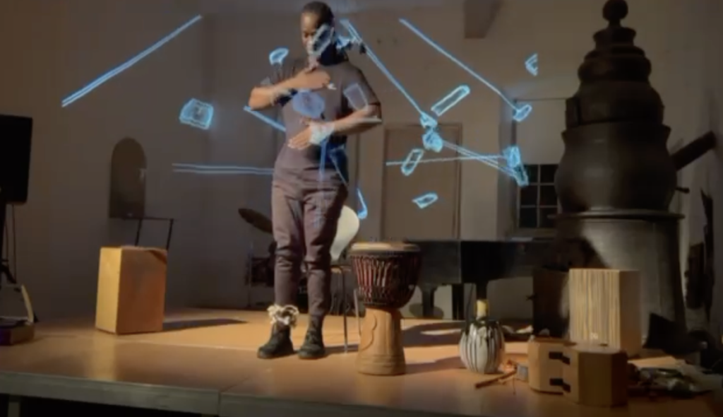 Marcus Neustetter, Micca Manganye and OMAI collaborate in the Pepper’s Ghost introducing Neustetter’s robot made of rusted steel to percussionist Micca to see what happens.