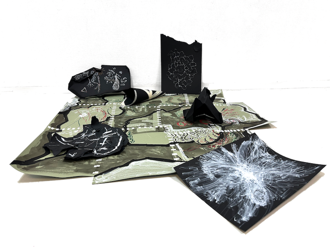 2Fold designates an ongoing process of a parallel act that discovers each other in the inquiry of doing. Two artists with different approaches and visual languages fold and unfold ideas of doing. Hence, they materialize this process with the use of paper. The act of folding always leaves a crease in paper, any other following act could never erase it. It is in the crease that new forms and questions emerge. Lace and Neustetter explore what happens in the crease as a place for revealing that which is hidden as well as that which is speculated and imagined. One of the chapters of the exhibition was dedicated to the undertakings of THE ZoNE.